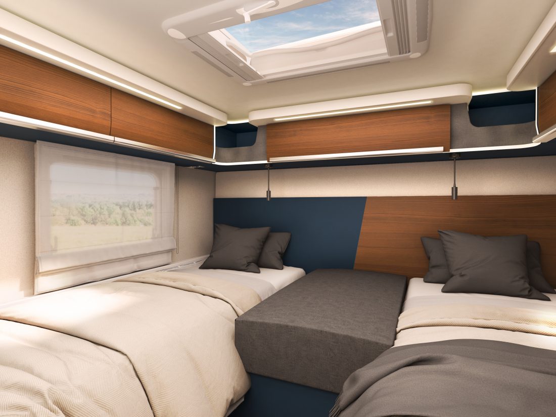 Ekstra gæster? Intet problem. Den valgfri sænkeseng (140 cm bred), der er elektrisk betjent og integreret i loftet, har plads til dine rejsekammerater i så mange nætter, I ønsker.