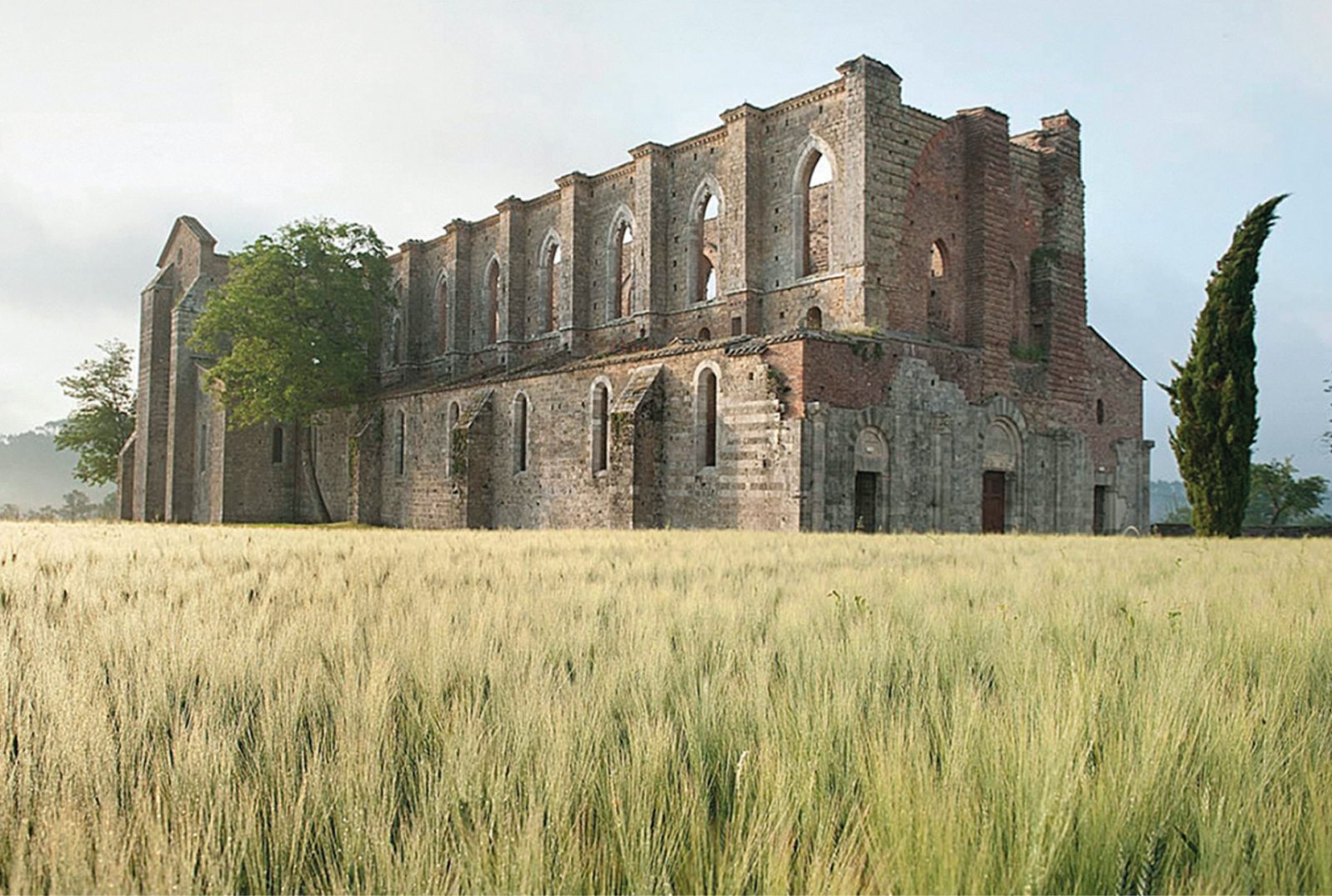 Our journey begins at San Galgano Abbey, a Cistercian abbey built in Chiusdino in 1218. Chiusdino is located about 30 km southwest of Siena. The history of San Galgano, after which the church is named, has a lot in common with the stories of medieval knights: after living an ostentatious lifestyle, San Galgano had a sudden enlightenment that led him to withdraw into a hermit life.
