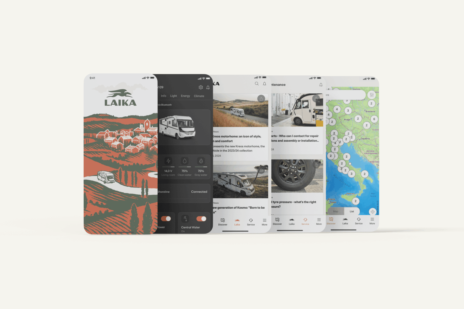 The MyLaika app offers travellers efficient, integrated management of their vehicles, keeps them up to date with the latest news from Laika, helps them to explore itineraries and provides answers to their technical queries.