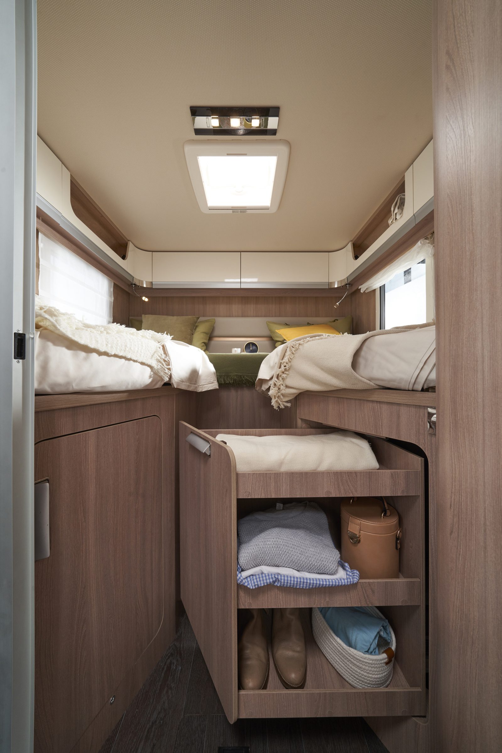 The extra wide premium body door is particularly inviting with a comfortable entrance. There is also an electrical step and central locking with remote control. With a mosquito net and blackout curtains, deep, refreshing sleep is planned in.