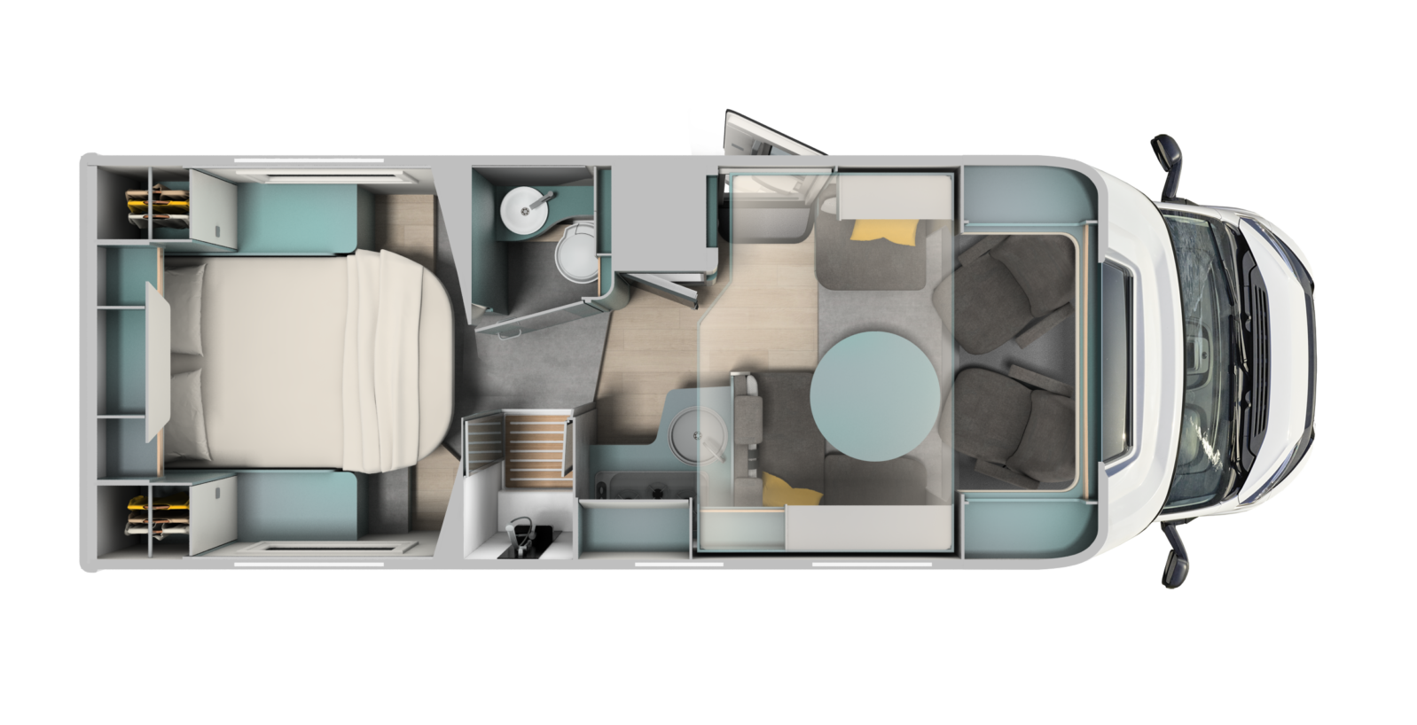 • Bathroom door also to be used as a separation for the centre of the vehicle (depending on model)