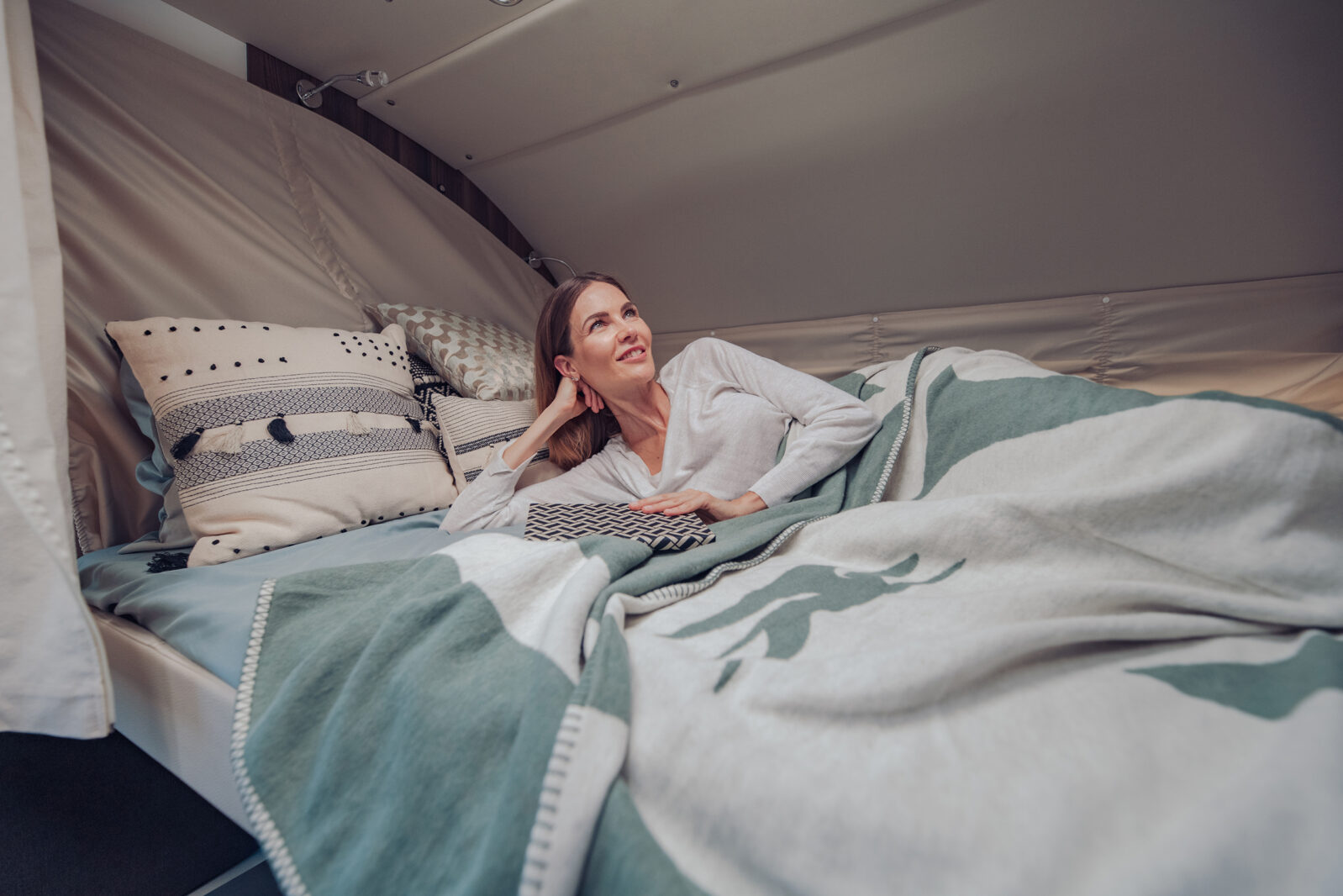La puerta extragrande de la serie Premium permite un acceso cómodo y agradable. También dispone de peldaño eléctrico y de sistema de cierre centralizado con mando a distancia, mientras que la mosquitera y la cortina oscurecedora garantizan un sueño profundo y regenerador.