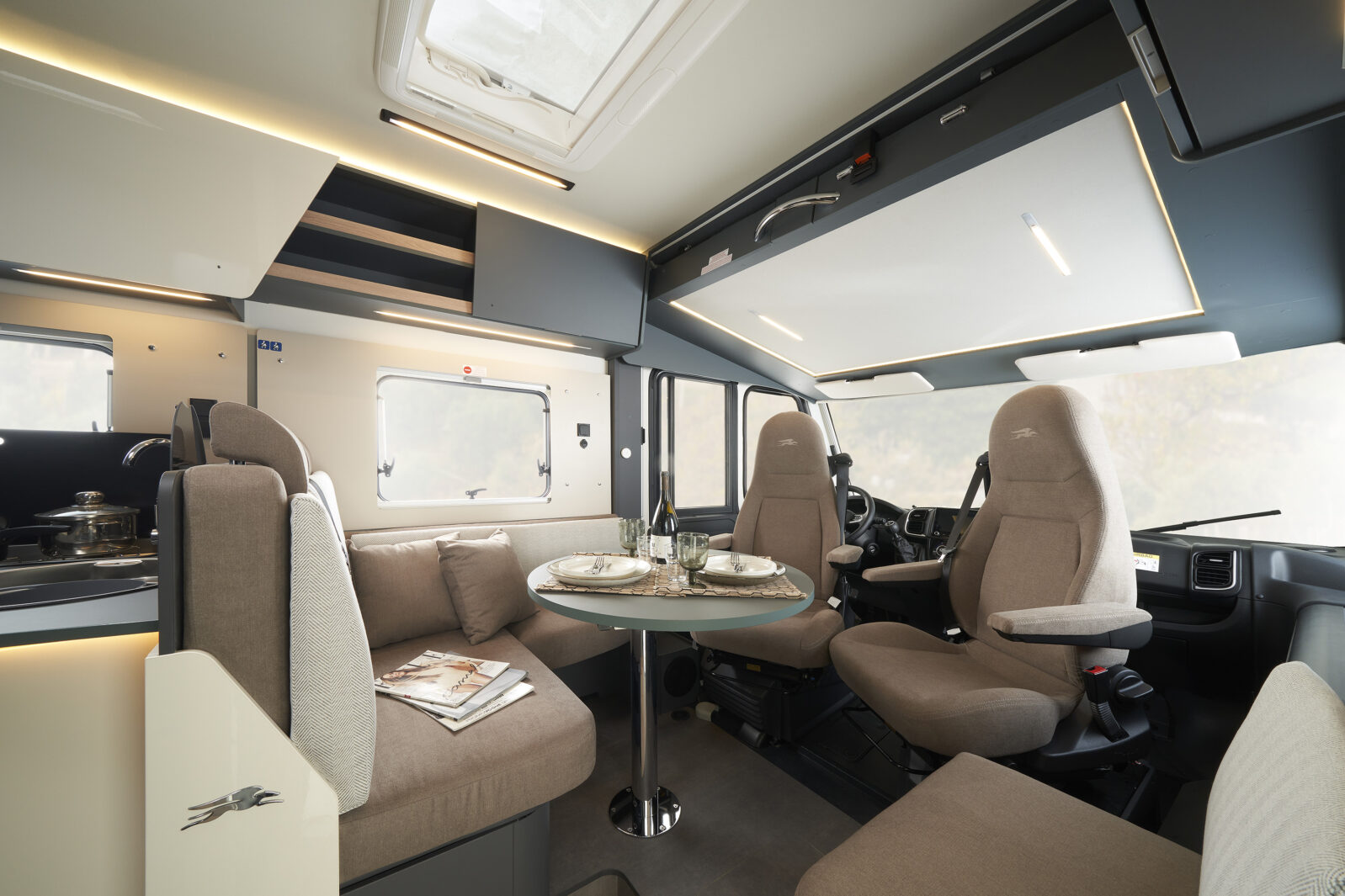 Con su estructura abierta y amplia, la autocaravana Kosmo Integral es una auténtica casa rodante de longitud adaptada y gran altura útil que ofrece infinitas posibilidades. Si se solicita, puede incorporar una cama basculante.