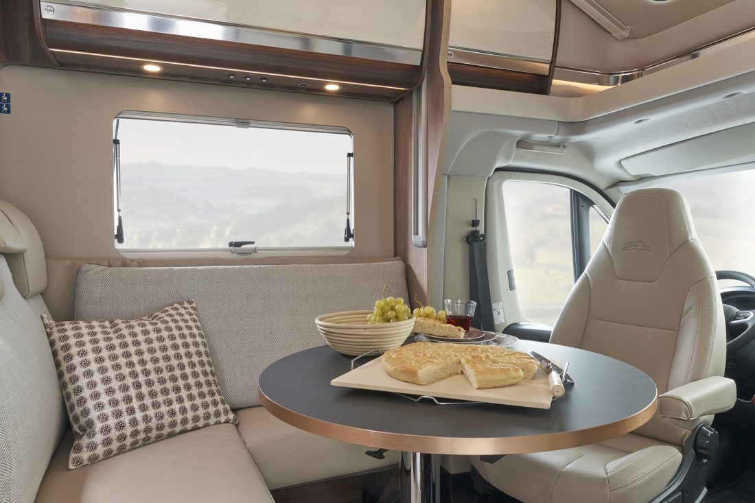 Au niveau de la dînette, la table rectangulaire des versions DS est remplacée par une table ronde sur pied télescopique pour plus de confort et d’ergonomie.