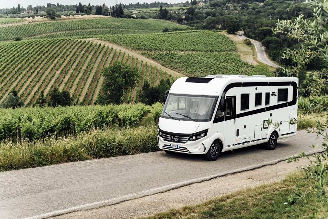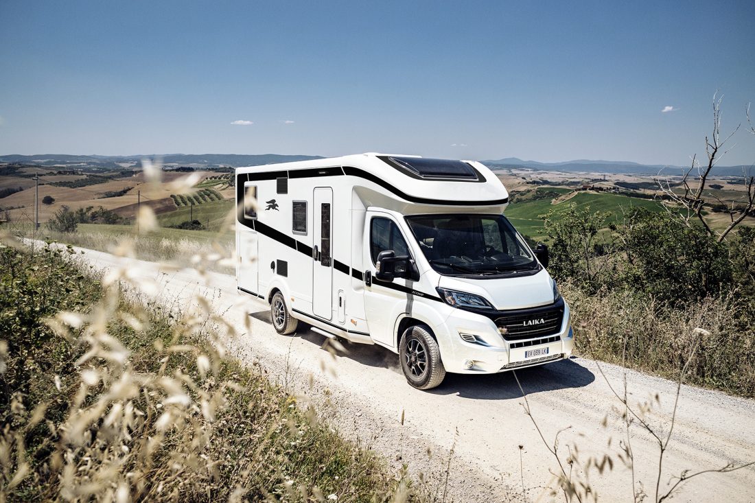 Un premier coup d’œil à l’extérieur suffit pour que les sérigraphies en noir mat vous sautent aux yeux, en totale adéquation avec le style graphique du véhicule. Toujours à l’extérieur, la calandre avec le logo “Laika” à l’avant du véhicule et le lettrage chromé “Ecovip” à l’extérieur de la cabine suggèrent eux aussi une nette évolution du style de la série.
