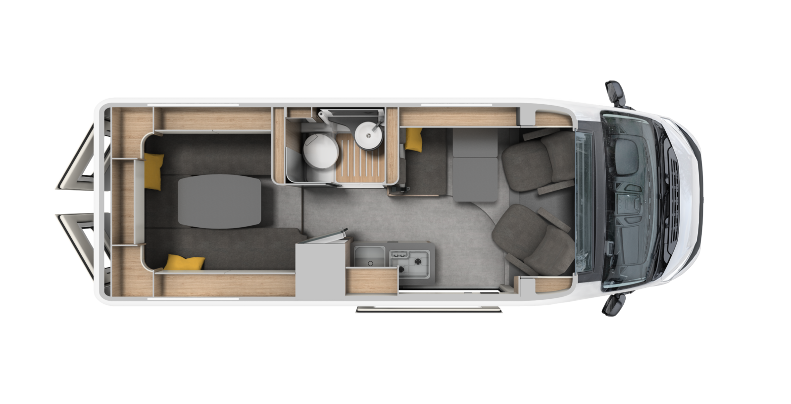 Mobilio interno disponibile in due design: “Rovere Moka” (S), “Pero Toscano” (O)