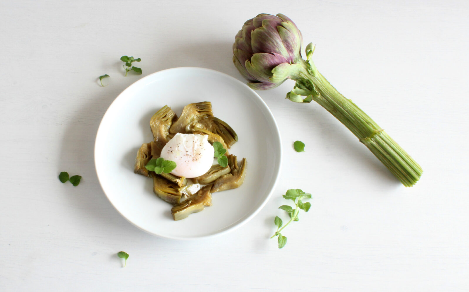 È il momento del secondo piatto: uovo in camicia con carciofi!