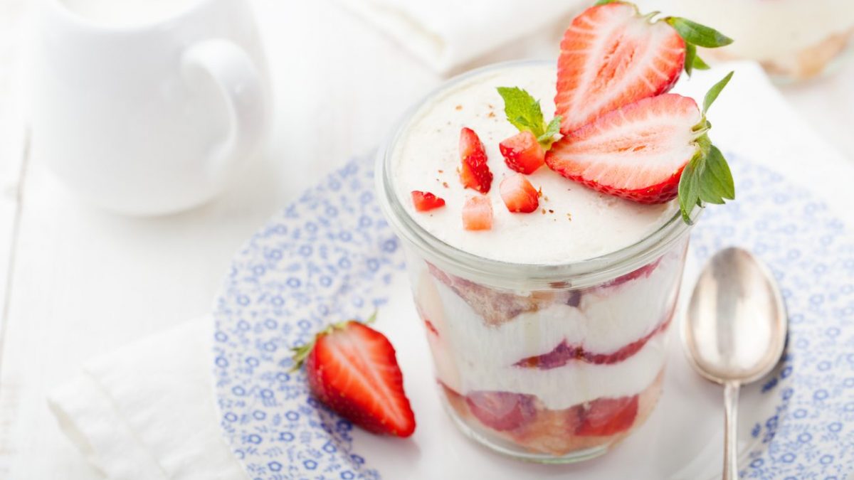 Passiamo così a lavare e tagliare le fragole, e contestualmente sbriciolare i biscotti. Posiamo un po’ di crema al mascarpone sulla base della ciotola, stendendo sopra uno strato di fragole e biscotti, e coprendo con un ulteriore strato di mascarpone.
