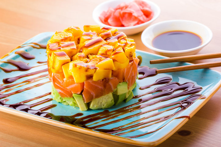 Cominciamo con un’entrée gustosa e abbastanza semplice da preparare! Una tartare di salmone, avocado e mango è il perfetto modo di introdurre un pranzo sfizioso.