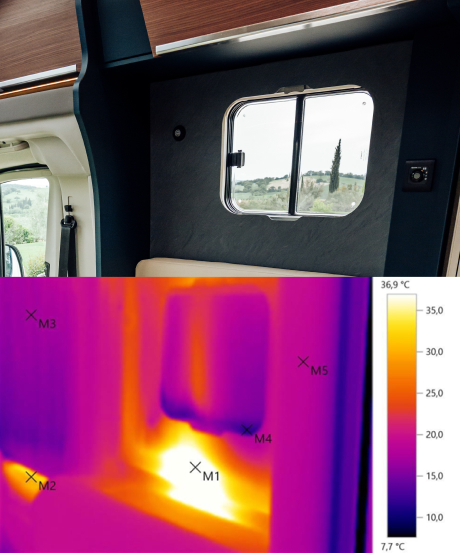 De uitstekende isolatie van de Kreos kampeerauto H 5109 zorgt voor een stabiele temperatuur aan boord, dankzij hoogwaardige materialen met een hoge thermische weerstand. In het bijzonder wordt de ideale temperatuur aan boord gegarandeerd door het gebruik van
