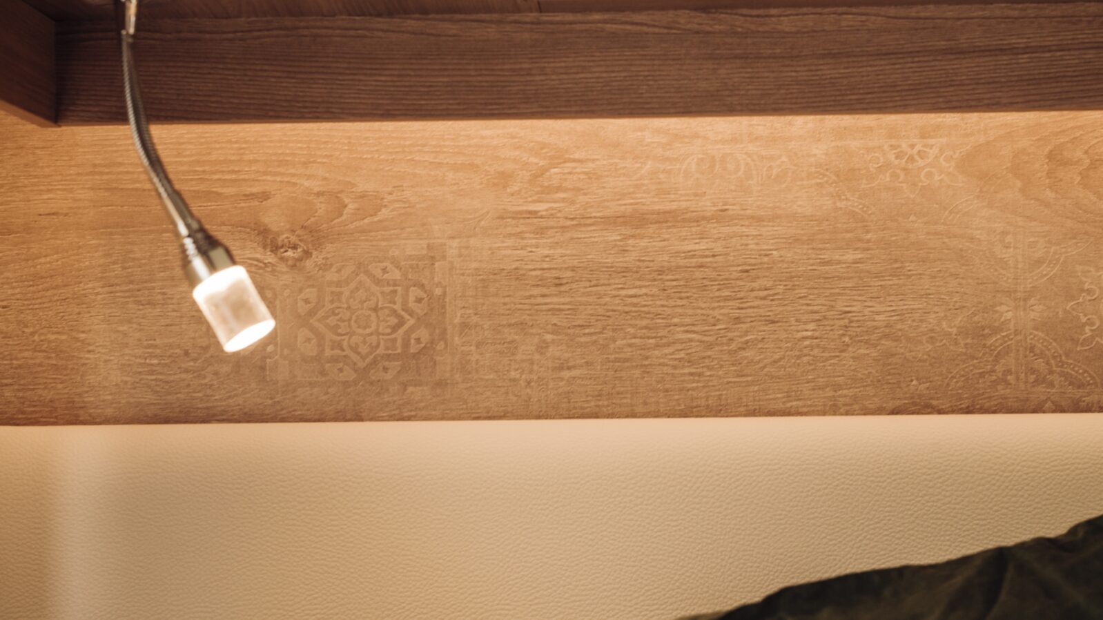 Et topp materialvalg skaper et perfekt samspill mellom tekstiler og treelementer i alle bobil-interiørene.